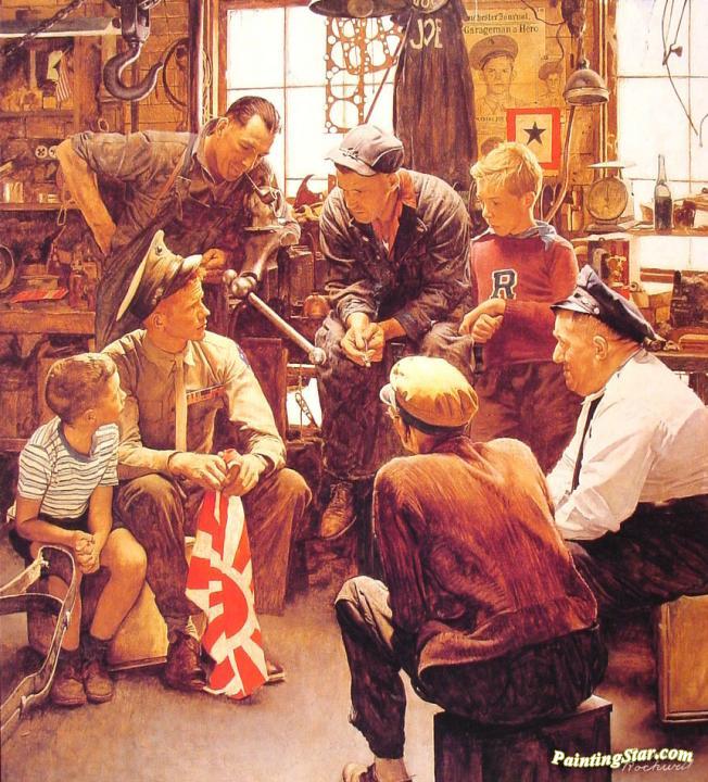 Homecoming Marine, Art Painting by Norman Rockwell