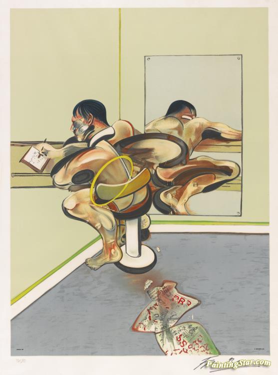 Homme Écrivant ReflÉtÉ Dans Un Miroir, Art Painting by Francis Bacon