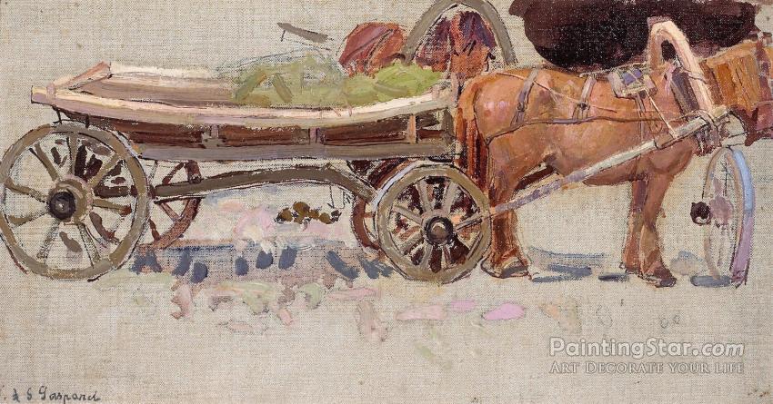 Horse And Wagon With Yoke, Art Painting by Leon Shulman Gaspard