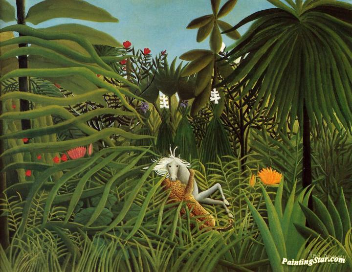 Horse Attacked by a Jaguar, Art Painting by Henri Rousseau