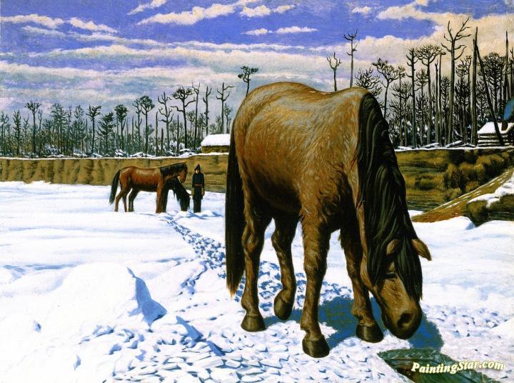 Horse Drinking At An Ice Hole, Art Painting by William George Richardson Hind