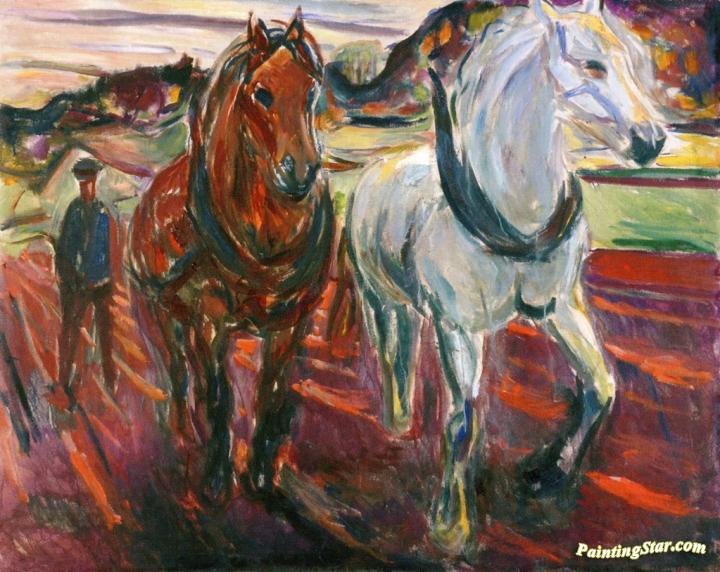 Horse Team Plowing, Art Painting by Edvard Munch