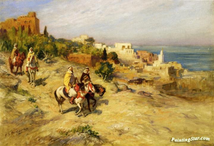 Horsemen on a Coastal Path, Algiers, Art Painting by Frederick Arthur Bridgman