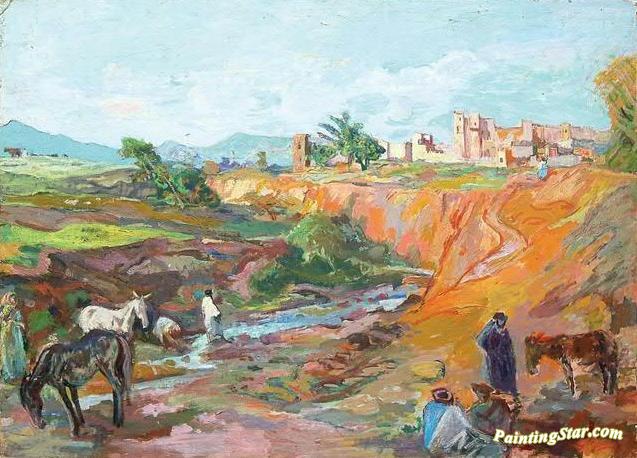 Horsemen on the Edge of the Wadi, Art Painting by Edy Legrand