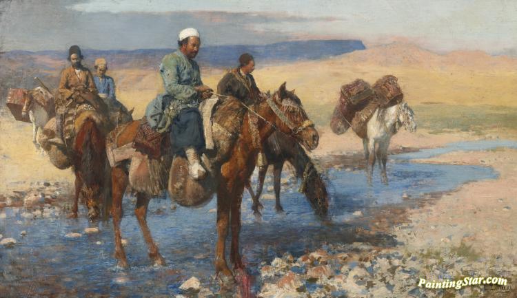 Horses At The Ford, Persia, Art Painting by Edwin Lord Weeks