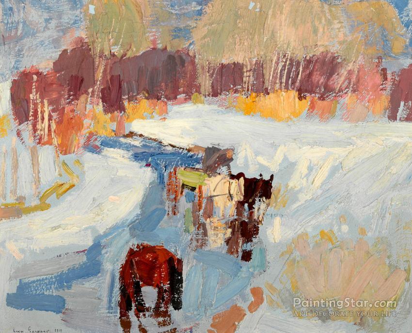 Horses In Winter, Taos, 1919, Art Painting by Leon Shulman Gaspard