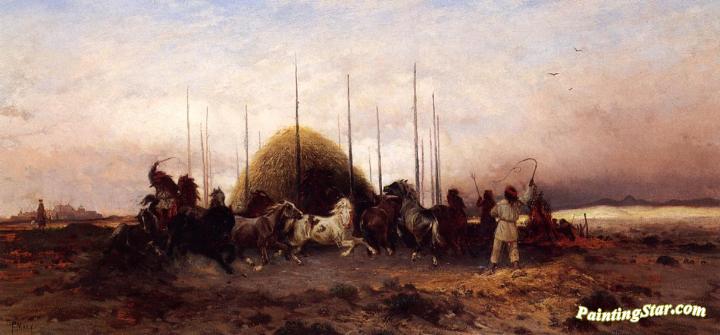 Horses Threshig Wheat, San Juan, New Mexico, Art Painting by Peter Moran