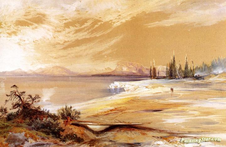 Hot Springs on the Shore of Yellowstone Lake, Art Painting by Thomas Moran