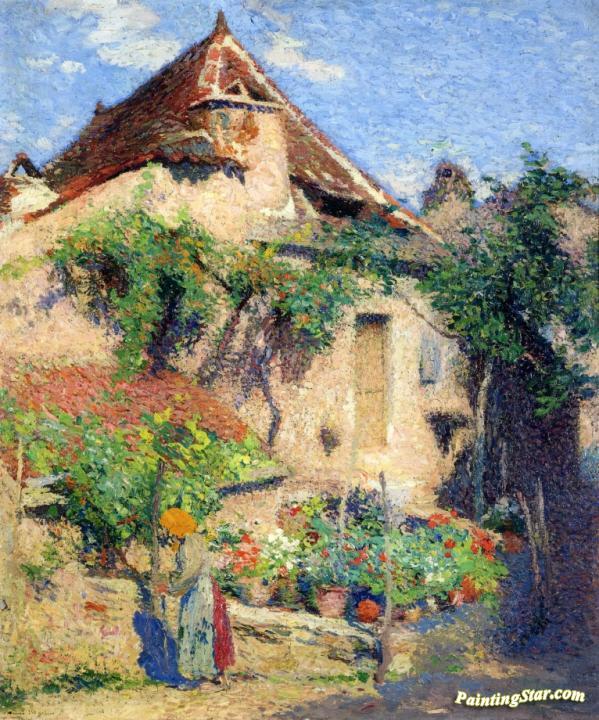 House and Garden at Saint-Cirq-Lapopie, Art Painting by Henri Martin