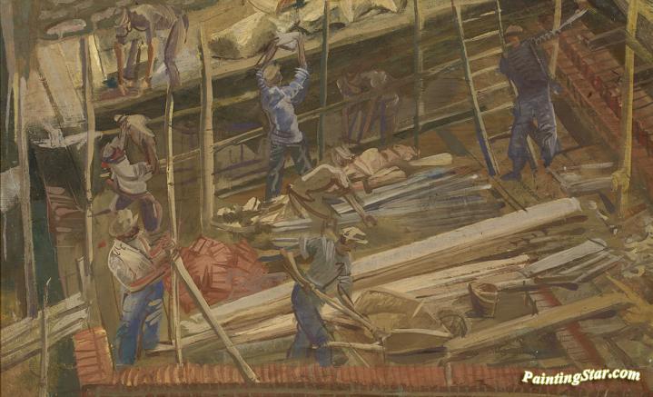House Builders, Art Painting by Alexander Evgenievich Yakovlev