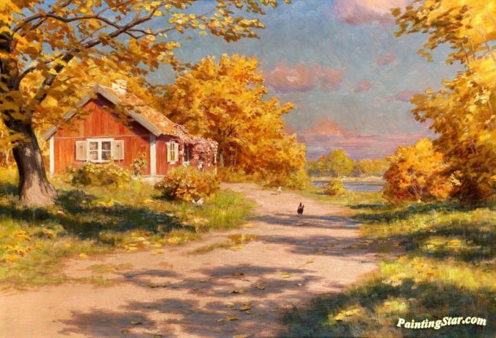 House In Autumn Landscape, Art Painting by Johan Krouthén