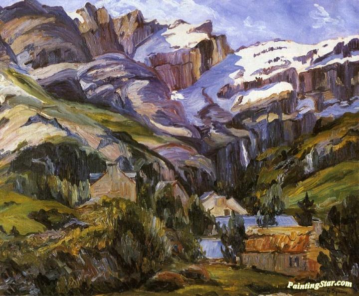 Houses at the Base of Snow Capped Mountains, Art Painting by George Gardner Symons