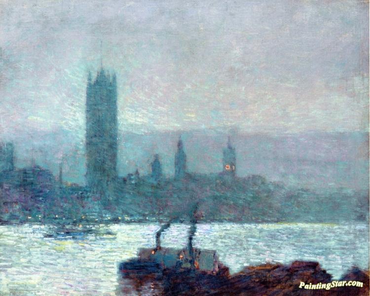 Houses of Parliament, Early Evening, Art Painting by Frederick Childe Hassam