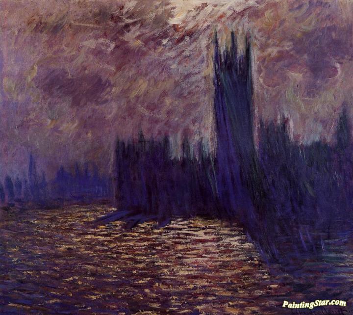 Houses of Parliament, Reflection of the Thames, Art Painting by Claude Oscar Monet