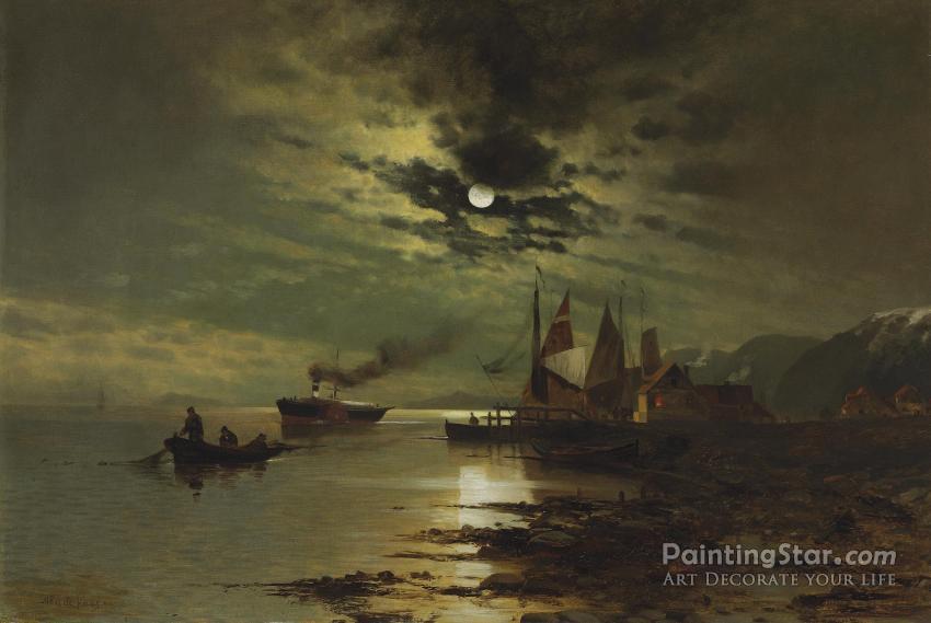 Hudson Under The Moonlight, Art Painting by Mauritz F. H. De Haas