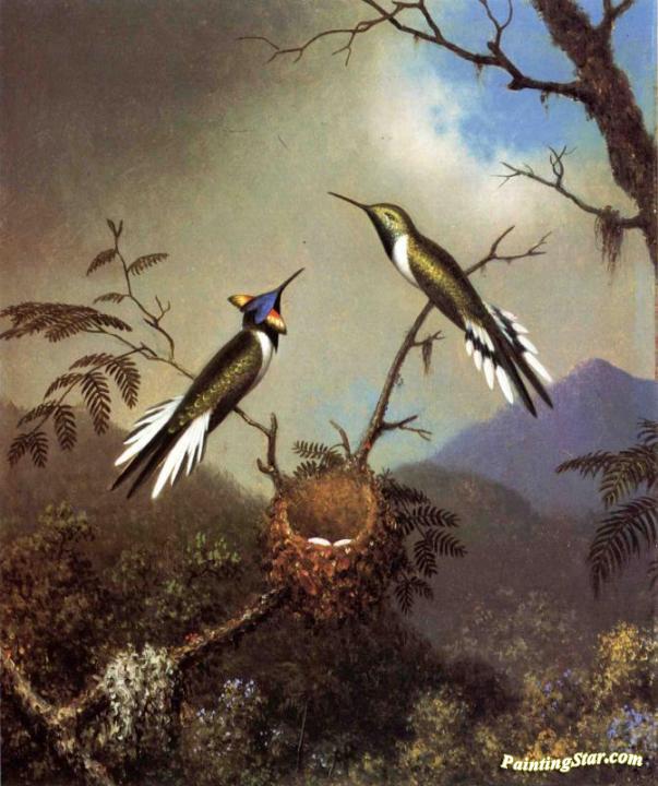 Hummingbirds At Their Nest - Sun Gems, Art Painting by Martin Johnson Heade