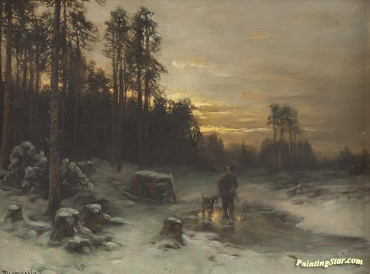 Hunter In A Winter Landscape, Art Painting by Desire Thomassin-Renardt