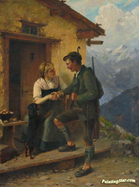 Hunter visiting the dairymaid, Art Painting by Theodore Kleehaas