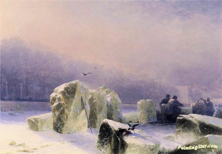 Ice-Breakers on the Frozen Neva in St. Petersburg, Art Painting by Ivan Constantinovich Aivazovsky