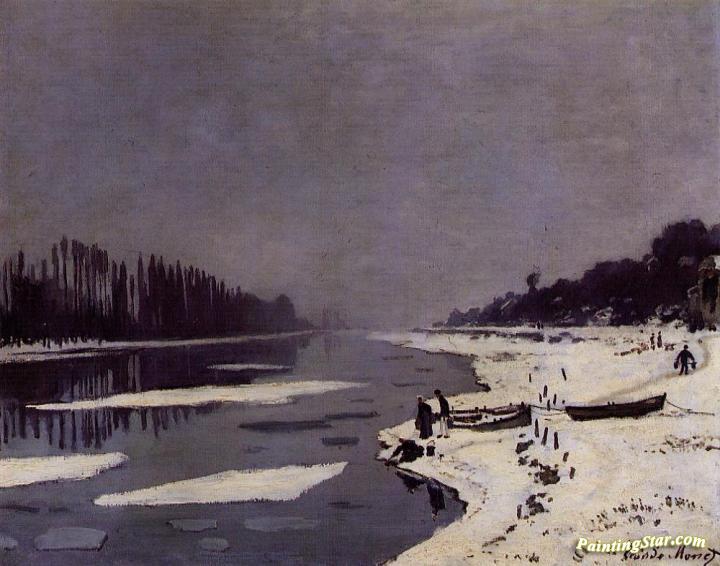Ice Floes on the Seine at Bougival, Art Painting by Claude Oscar Monet