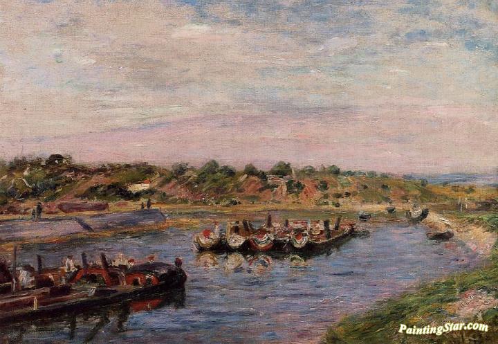 Idle Barges on the Loing Canal at Saint-Mammes, Art Painting by Alfred Sisley