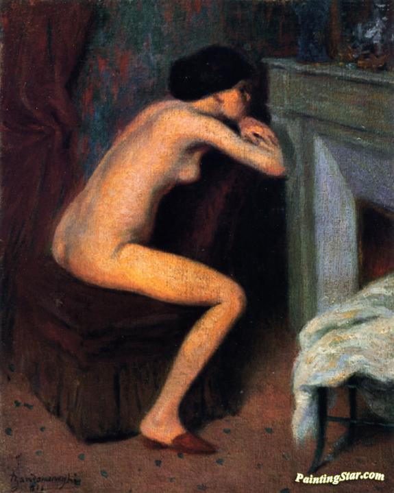 In Front of the Fireplace, Art Painting by Federico Zandomeneghi