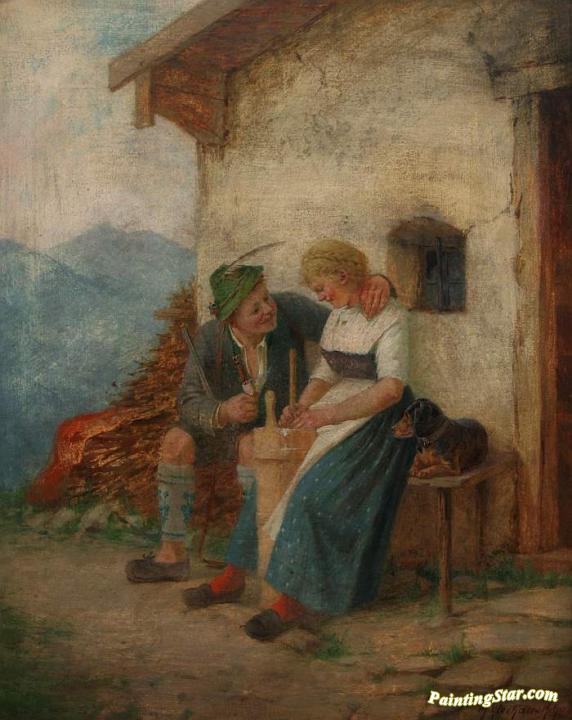 In front of the house, Art Painting by Theodore Kleehaas