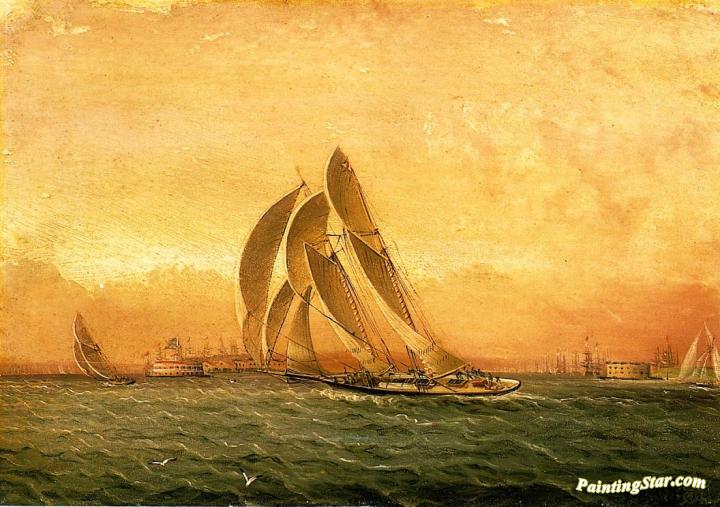 In Full Sail, New York Harbor, Art Painting by James E. Buttersworth