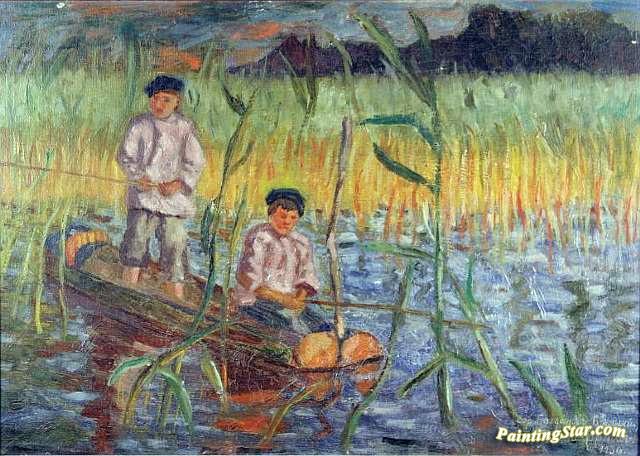 In the Cattails, Art Painting by Nikolai Petrovich Bogdanov-belsky