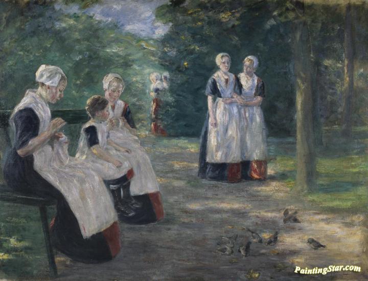 In the garden of an orphanage in Amsterdam, Art Painting by Max Liebermann