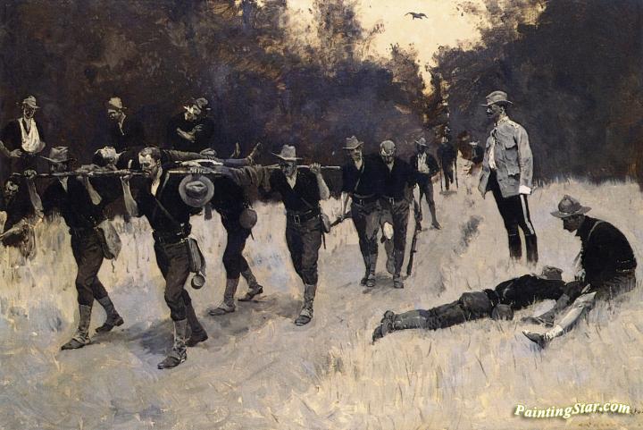In the Rear of the Battle: Wounded on the San Juan Road, Art Painting by Frederic Remington