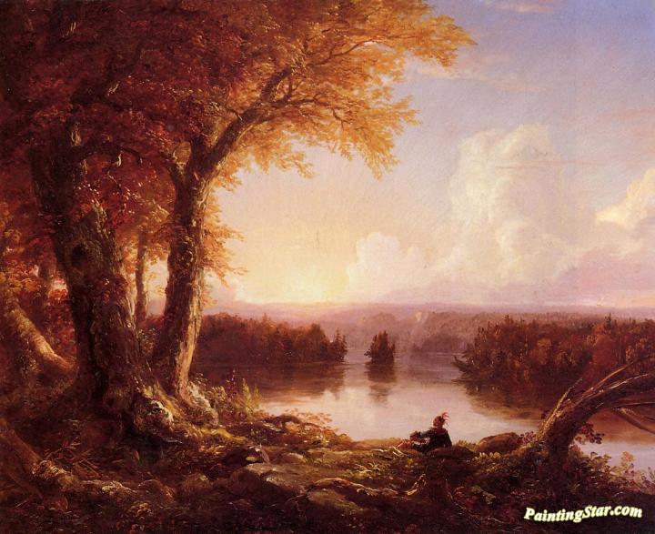 Indian at Sunset, Art Painting by Thomas Cole