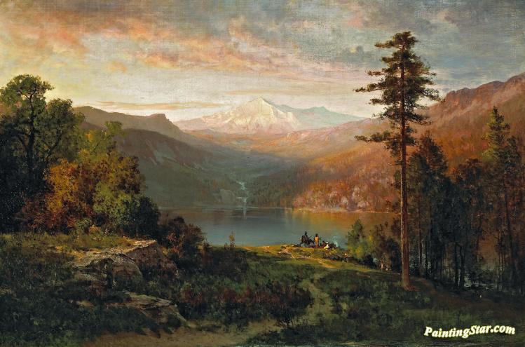 Indian By A Lake In A Majestic California Landscape, Art Painting by Thomas Hill