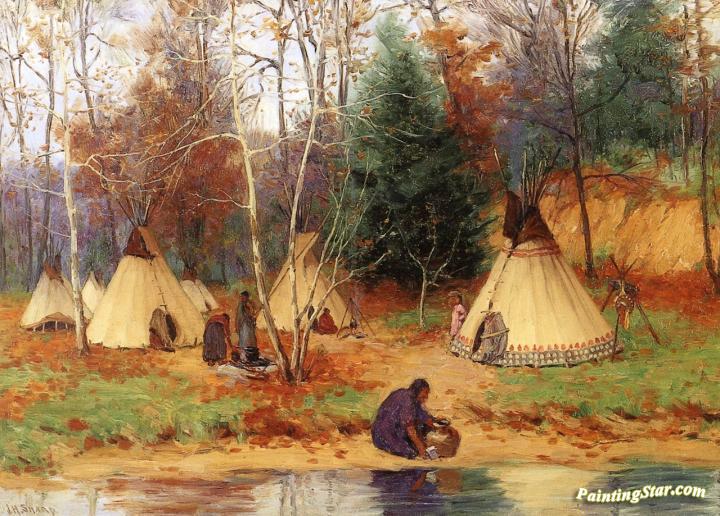 Indian Encampment in the Woods, Art Painting by Joseph Henry Sharp