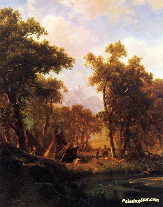 Indian Encampment, Shoshone Village, Art Painting by Albert Bierstadt