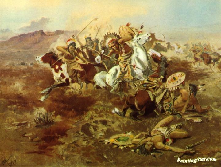Indian Fight, #1, Art Painting by Charles Marion Russell