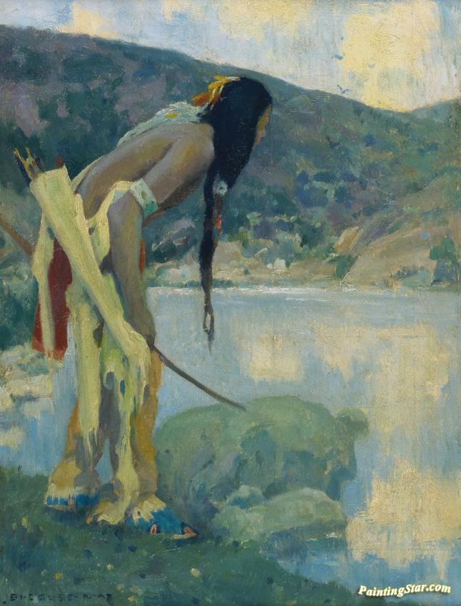 Indian Hunter, Late Afternoon Hondo, Art Painting by E. Irving Couse