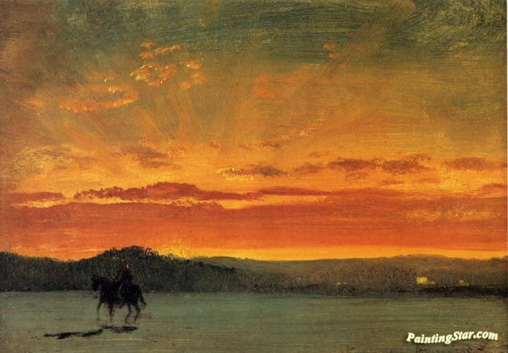 Indian Rider at Sunset, Art Painting by Albert Bierstadt