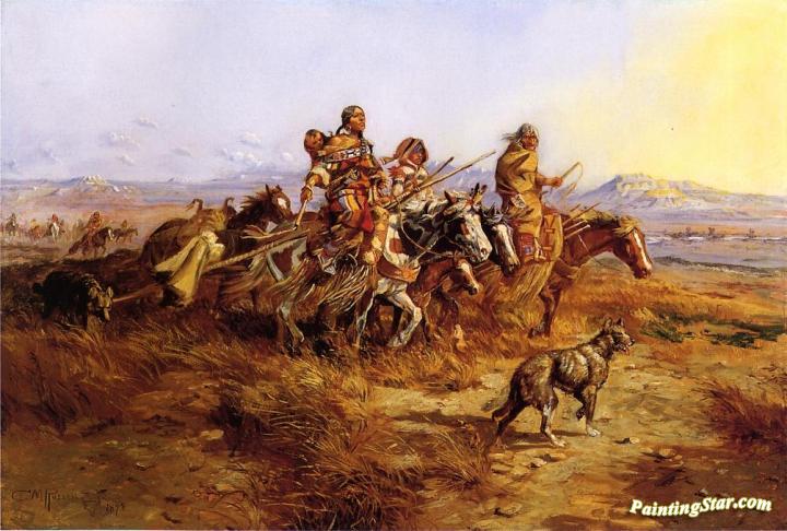 Indian Women Moving, Art Painting by Charles Marion Russell