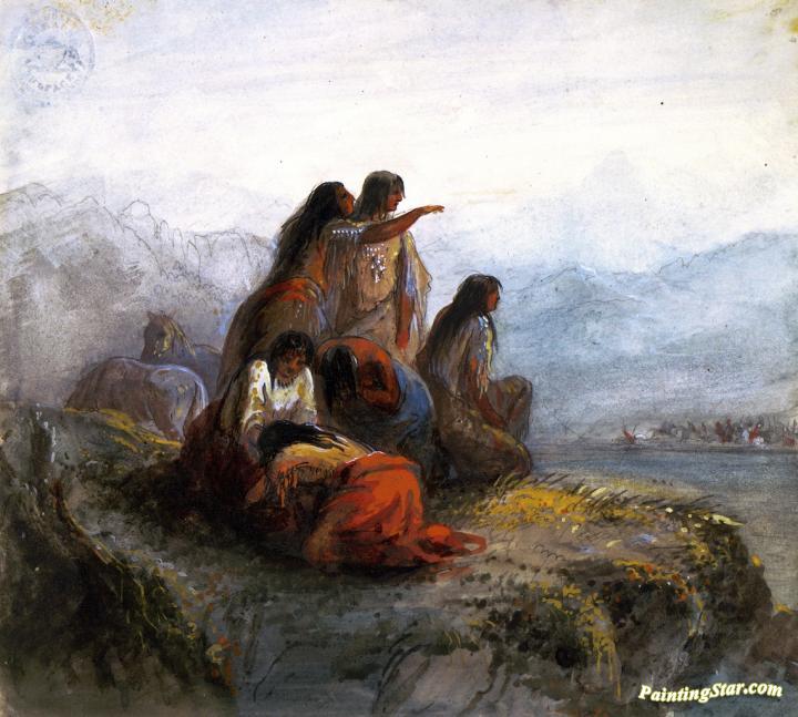 Indian Women Watching a Battle, Art Painting by Alfred Jacob Miller