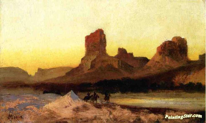 Indians at the Green river, Art Painting by Thomas Moran