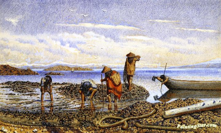 Indians Gathering Shellfish, Victoria Island, Art Painting by William George Richardson Hind