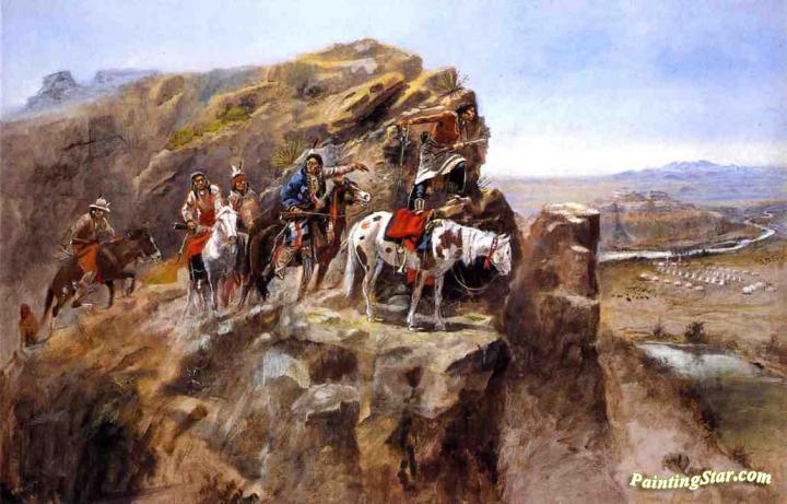 Indians on a Bluff Surveying General Miles' Troops, Art Painting by Charles Marion Russell