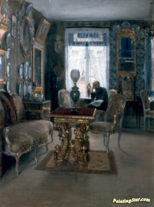 Interior at the bookseller Henric Carlsson, Art Painting by Johan Krouthén