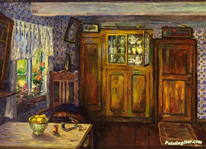 Interior of a fishing lodge, Art Painting by Clarita Beyer