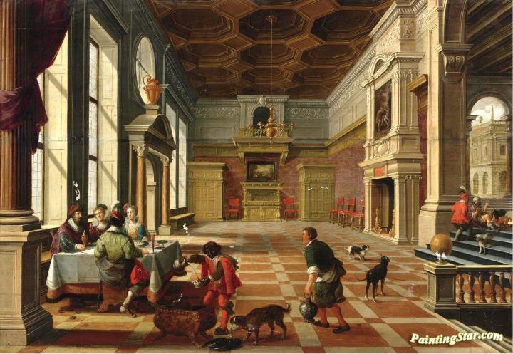 Interior Of A Palace With Elegant Figures Dining, Art Painting by Bartholomeus van Bassen