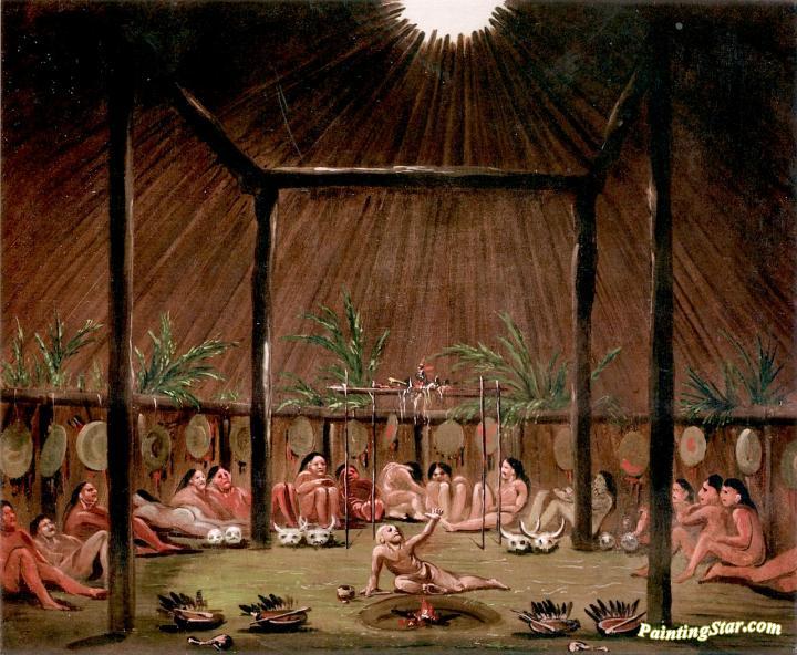 Interior View Of The Medicine Lodge, Mandan O-kee-pa Ceremony, Art Painting by George Catlin