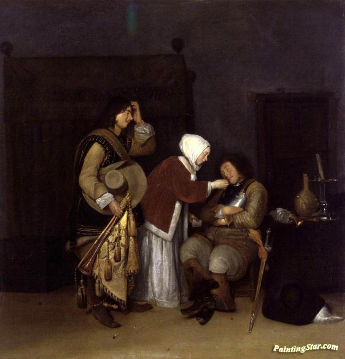 Interior with a Sleeping Soldier, Art Painting by Caspar Netscher