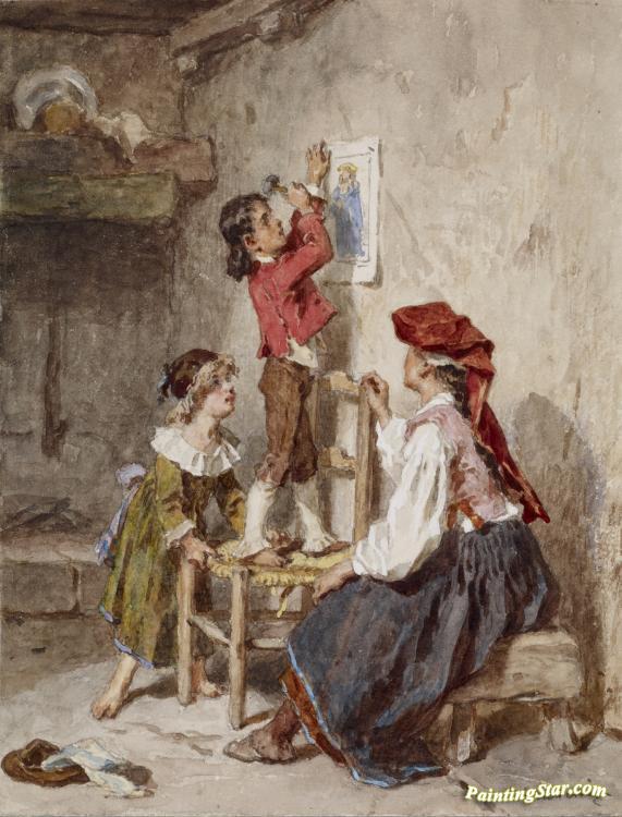 Interior With Italian Woman And Children, Art Painting by Alexandre-marie Guillemin