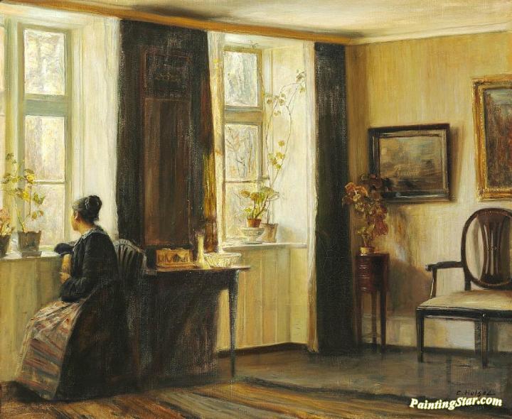 Interior with the artist's wife at the window, Art Painting by Carl Vilhelm Holsoe